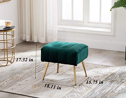 Artechworks Velvet Modern Tub Barrel Arm Chair Upholstered Tufted with Gold Metal Legs Accent Club Chair with Ottoman Footrest for Living Reading Room Bedroom, Green